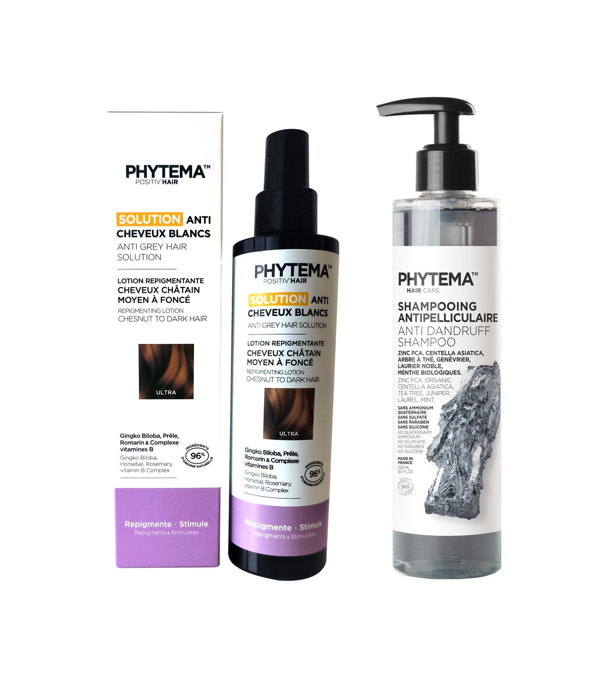 Set Solutie repigmentare par alb, grizonat, Ultra si Sampon BIO anti-matreata, antipelliculaire, Phytema 150ml + 250ml